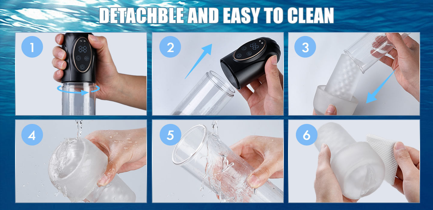 Equipped with 2 thickened silicone sleeves and a soft silicone pocket pussy, the thickened sleeves enhance the locking force to prevent sealing condoms and testicles from being sucked in, protecting your body from harm. The soft and silky touch provides a lifelike oral sex experience. Fully waterproof allows for more thrilling explorations in water.